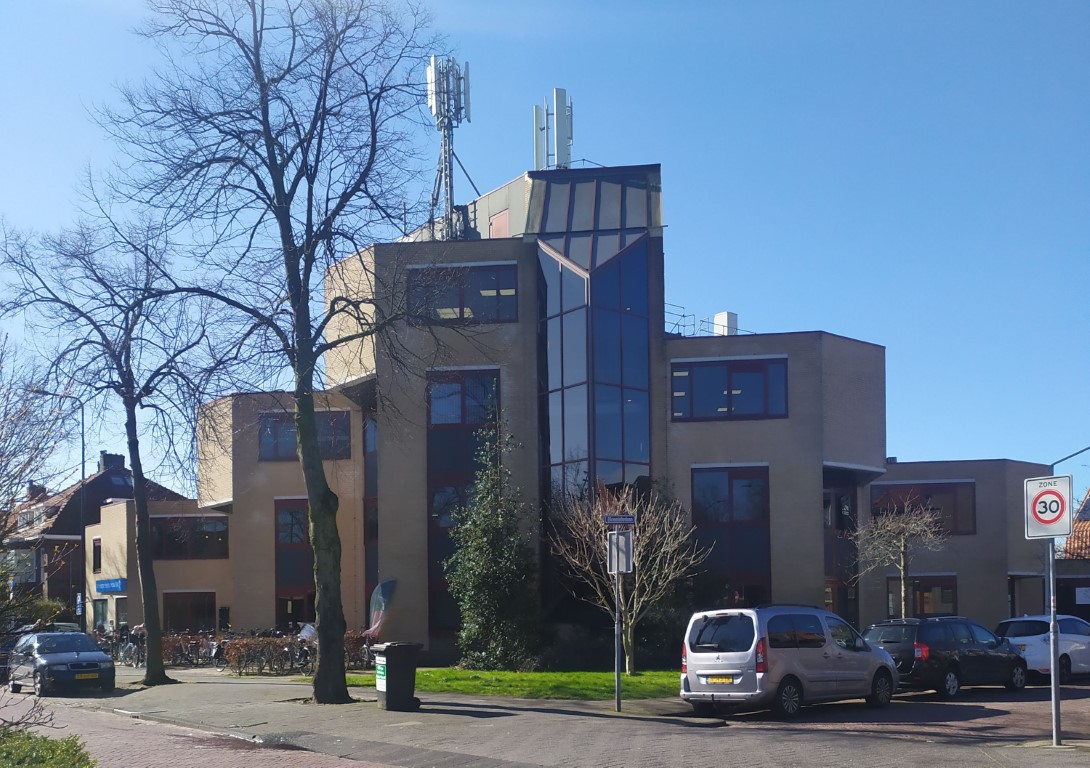 - 1939 - Zuiderkerk Lammenschansweg 15 architect: A. van der Kraan foto: A. van Vliet De Gereformeerde Kerk had aanvankelijk drie kerkgebouwen in de binnenstad: de Oude Vestkerk, de Herengrachtkerk en de Hooigrachtkerk. Intussen ontvolkte de binnenstad en kwamen er nieuwe woonwijken aan de rand van de stad. Daardoor ontstond er behoefte aan kerkgebouwen in de buitenwijken. De Hooigrachtkerk die hard aan een renovatie toe was, zou worden afgestoten. In 1938 ging de gereformeerde kerkeraad akkoord met een revolutionair ontwerp voor een nieuw kerkgebouw aan de Lammenschansweg. Het hoofdgedeelte van het gebouw had de vorm van iets minder dan een kwart cirkel. De banken in de kerk stonden in een waaiervorm rond de preekstoel en dat vertaalde zich in de vorm van het gebouw. Dit idee was gebaseerd op de gedachte dat het woord in de protestantse eredienst centraal staat. Dat principe was overigens al toegepast in de Marekerk, de eerste Leidse kerk die na de reformatie werd gebouwd voor de protestantse eredienst. Niet iedereen was enthousiast over het ontwerp van de Zuiderkerk. Volgens sommigen leek het meer op een bioscoop of een schouwburg dan op een kerk. De kerk is in 1939 in gebruik genomen. In december 1963 is op het dak van de kerk in neonletters de tekst ‘God roept ook u’ geplaatst. Een dergelijke reclametekst is heel ongebruikelijk voor een gereformeerde kerk. Het gebouw won daarmee wel aan herkenbaarheid en het kreeg als bijnaam, de ‘God-roept-ook-u-kerk’, maar ook grappenmakers gingen ermee aan de haal. Een aantal kwajongens klommen op het dak en schilderden een deel van de letters zwart waardoor de tekst veranderde in ‘God poept ook’. De neonletters zijn in de loop van de jaren zeventig verwijderd. Begin jaren tachtig bleek dat het door het teruglopende aantal kerkgangers niet langer haalbaar was om de kerk in gebruik te houden. In 1983 werd besloten dat de kerk zou worden verkocht. Het gebouw is voorgedragen voor de monumentenlijst, maar het heeft die status niet gekregen. In de eerste helft van 1984 werden er nog kerkdiensten gehouden en de bijgebouwen bleven voorlopig in gebruik. Met de verkoop wilde het niet vlotten. Op zaterdag 15 september brak er brand uit in de kerk, waardoor het gebouw ernstige schade opliep. Het was niet verloren, maar de verkoop werd nu nog lastiger. In juni 1985 werd de kerk gekraakt. Een maand later is hij verkocht aan De Haagse projectontwikkelaar Erica Beheer BV en dat betekende het roemloos einde van een gebouw dat uit architectonisch oogpunt bijzonder waardevol was. De kerk werd gesloopt en op die plaats kwam een kantoorpand voor het RIAGG. Nu is het in gebruik als gezondheidscentrum.